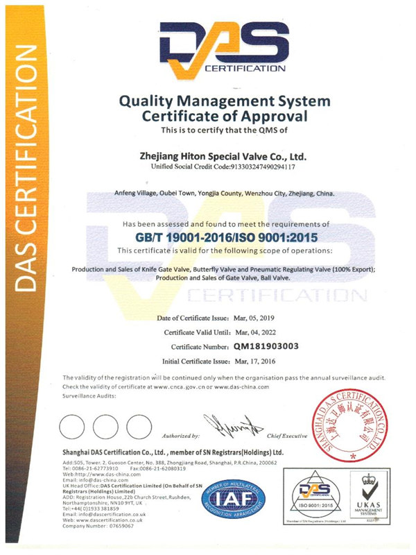 ISO9001體系證書(shū)