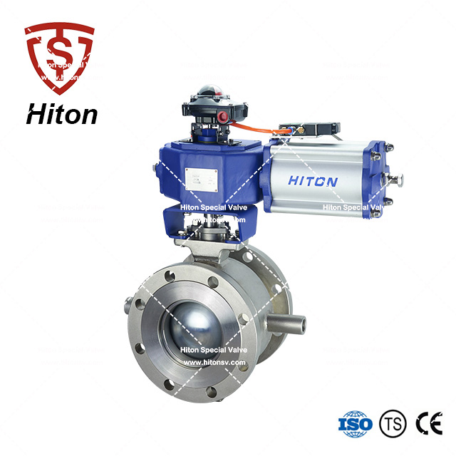 我公司研發(fā)的氣動(dòng)保溫V型球閥是一種直角回轉(zhuǎn)的高級(jí)控制閥,它的啟閉件是帶特殊V型開(kāi)口的半球體,具有鋒利的刃口。在球體回轉(zhuǎn)過(guò)程中,密封面具有強(qiáng)有力的切斷力和自清潔功能。球體的V型開(kāi)口與閥座流道形成一個(gè)扇形區(qū)域,在回轉(zhuǎn)過(guò)程中可改變流道截面積,形成對(duì)介質(zhì)的線性等比例精確調(diào)節(jié)。因此V型調(diào)節(jié)球閥同時(shí)具備調(diào)節(jié)和開(kāi)關(guān)兩種功能,可與氣動(dòng)或電動(dòng)執(zhí)行器配套,廣泛使用于造紙、化工、石油、化纖、電力、冶金、制藥、環(huán)保等領(lǐng)域的控制系統(tǒng)。