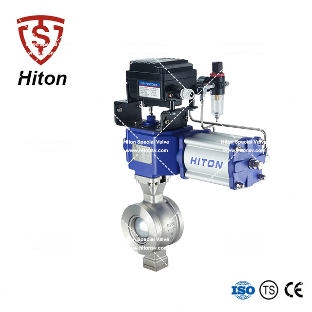 我公司研發(fā)的氣動(dòng)對(duì)夾V型球閥是一種直角回轉(zhuǎn)的高級(jí)控制閥,它的啟閉件是帶特殊V型開口的半球體,具有鋒利的刃口。在球體回轉(zhuǎn)過程中,密封面具有強(qiáng)有力的切斷力和自清潔功能。球體的V型開口與閥座流道形成一個(gè)扇形區(qū)域,在回轉(zhuǎn)過程中可改變流道截面積,形成對(duì)介質(zhì)的線性等比例精確調(diào)節(jié)。因此V型調(diào)節(jié)球閥同時(shí)具備調(diào)節(jié)和開關(guān)兩種功能,可與氣動(dòng)或電動(dòng)執(zhí)行器配套,廣泛使用于造紙、化工、石油、化纖、電力、冶金、制藥、環(huán)保等領(lǐng)域的控制系統(tǒng)。