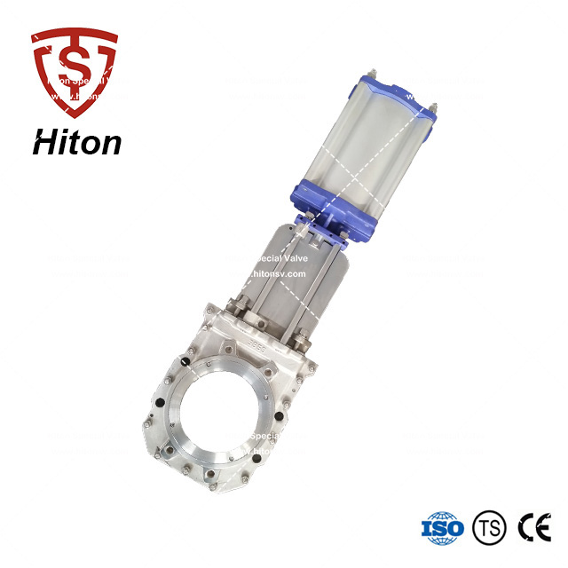 浙江海盾研發(fā)生產(chǎn)的氣動(dòng)方型刀閘閥是一種直行程的開(kāi)關(guān)切斷閥,用于惡劣工況。主要應(yīng)用于回收系統(tǒng),如碎漿機(jī)的垃圾或沙子分離器,高濃度清潔裝置或者筒倉(cāng)排放固體顆粒的出口。此法閥門(mén)為兩片式閥體結(jié)構(gòu),圓口為進(jìn)口,方口為出口(比進(jìn)口大),因此介質(zhì)不會(huì)在閥腔內(nèi)積存,非常適合排渣。